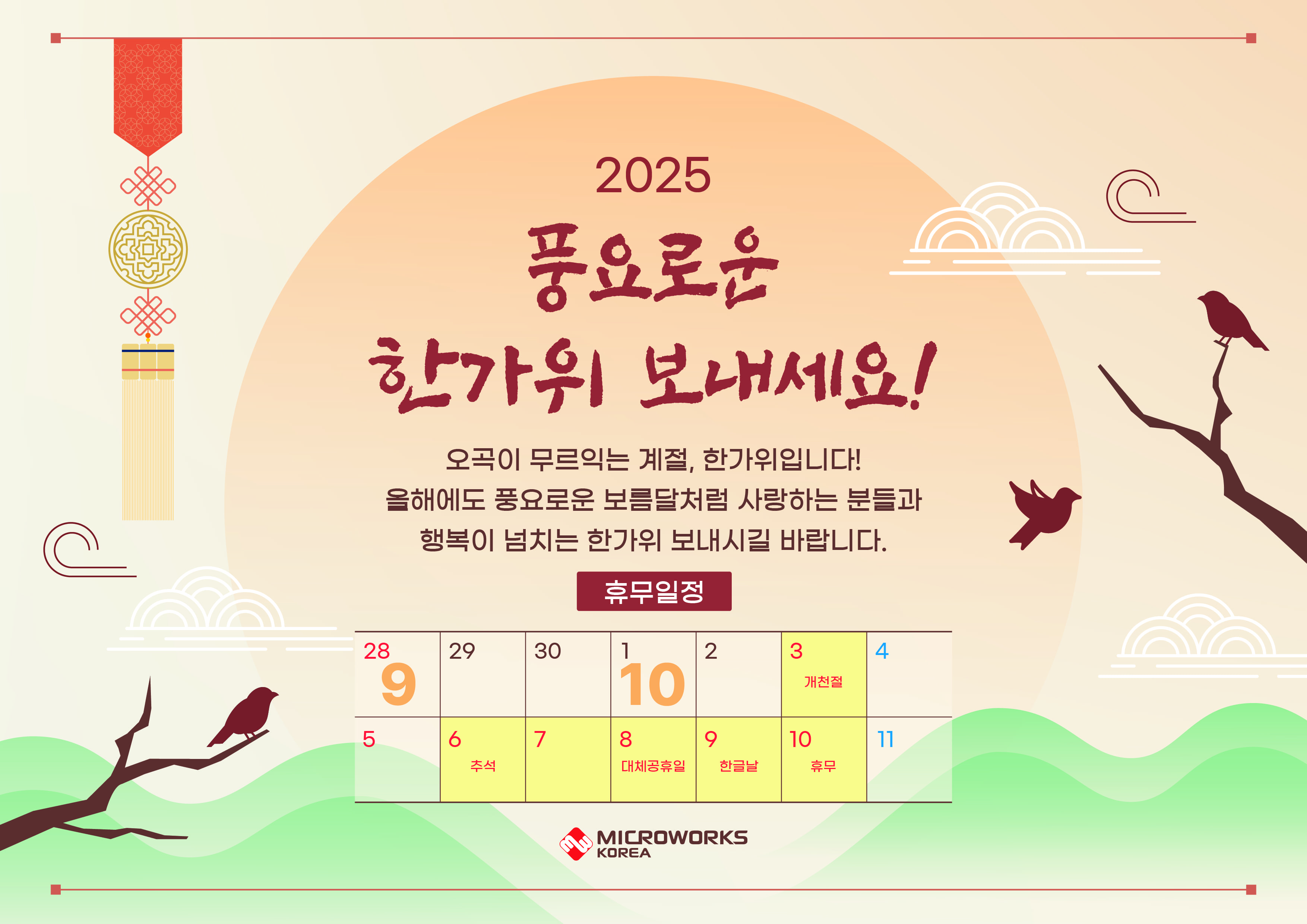 | 마이크로웍스 코리아(주) 워크샵 휴무일정 안내해드립니다. (0) | 2025.10.15 |