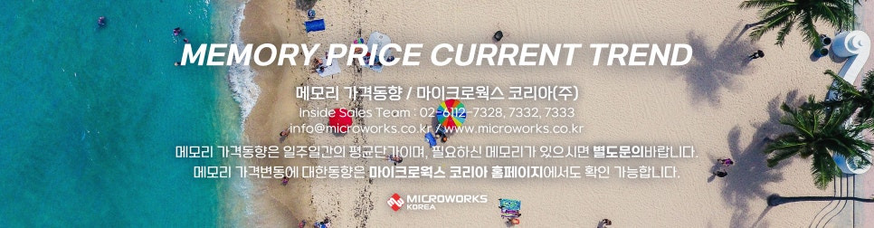 | 2025년도 9월 2주 / 메모리 가격동향 _ 마이크로웍스 코리아(주) (0) | 2025.09.08 |