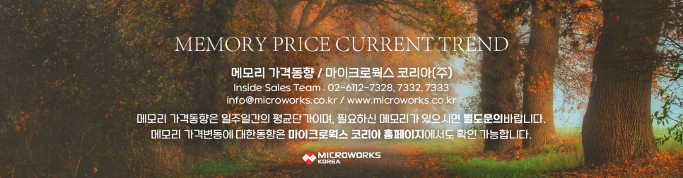 | 2025년도 10월 4주 / 메모리 가격동향 _ 마이크로웍스 코리아(주) (0) | 2025.10.20 |