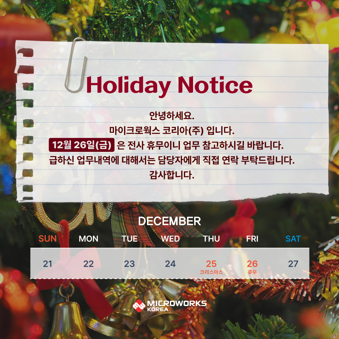 12월 26일(금)은 전사 업무를 휴무이니 업무 참고하시길 바랍니다.